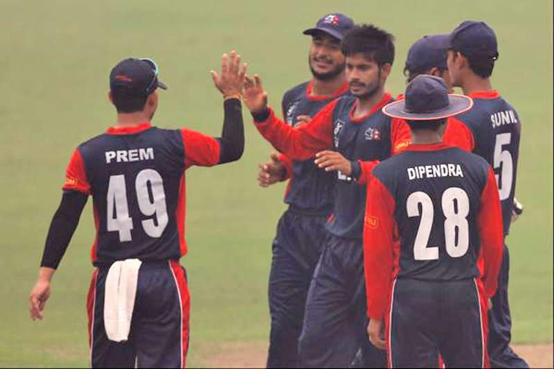 Dev Khanal (captain), Arjun Kumal, Akash Tripathi, Deepak Prasad Dumre, Durgesh Gupta, Gulsan Kumar Jha, Dipesh Prasad Kandel, Bishal Bikram KC, Subash Bhandari, Deepak Bohra, Uttam Thapa Magar, Bipin Rawal, Tilak Raj Bhandari , Akash Chand.