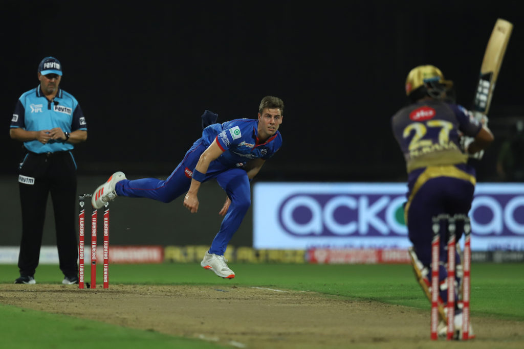 दिल्लीको लागि अनृच नोर्तिजेले सार्वधिक ३ विकेट लिए। उनले ४ ओभर बलिङ गर्दै ३३ रन खर्चिए। हर्सल पटेलले २ विकेट लिदा कगिसो रबडा, मार्कुस स्टोनिस र अमित मिश्राको नाममा १-१ विकेट रह्यो।