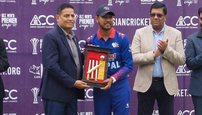 Sandeep Lamichhane has become the best player of the ACC Premier cup 2023. Sandeep took 13 wickets in the ACC Premier Cup and scored an unbeaten 42 against Qatar. He has scored 55 runs in 5 matches.