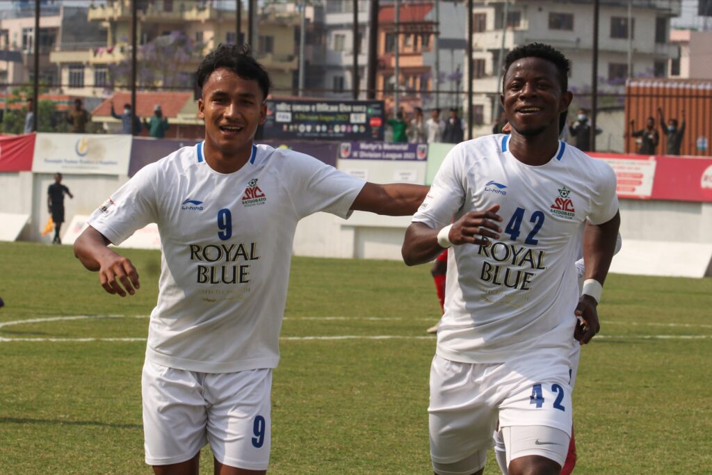 Satdobato Youth Club defeated Sankata Club by 4-0 on going Shahid Smarak A Division League. William Opoku Asiedu and Deepak Singh Thakuri scored 2 goals each in Satdobato’s victory.